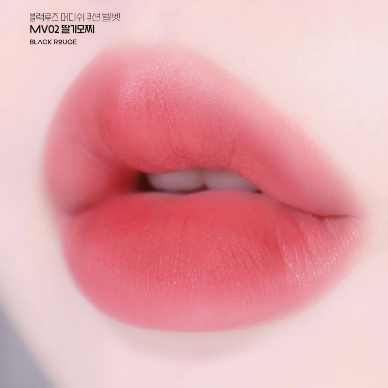 Black Rouge Muddish Cushion Velvet MV02 Strawberry Mochi sở hữu tone hồng trẻ trung, tạo cảm giác rực rỡ và năng động của tuổi trẻ. Chất son mềm mịn và lâu trôi, nhưng lại không hề gây khô môi như những dòng son tint lì.