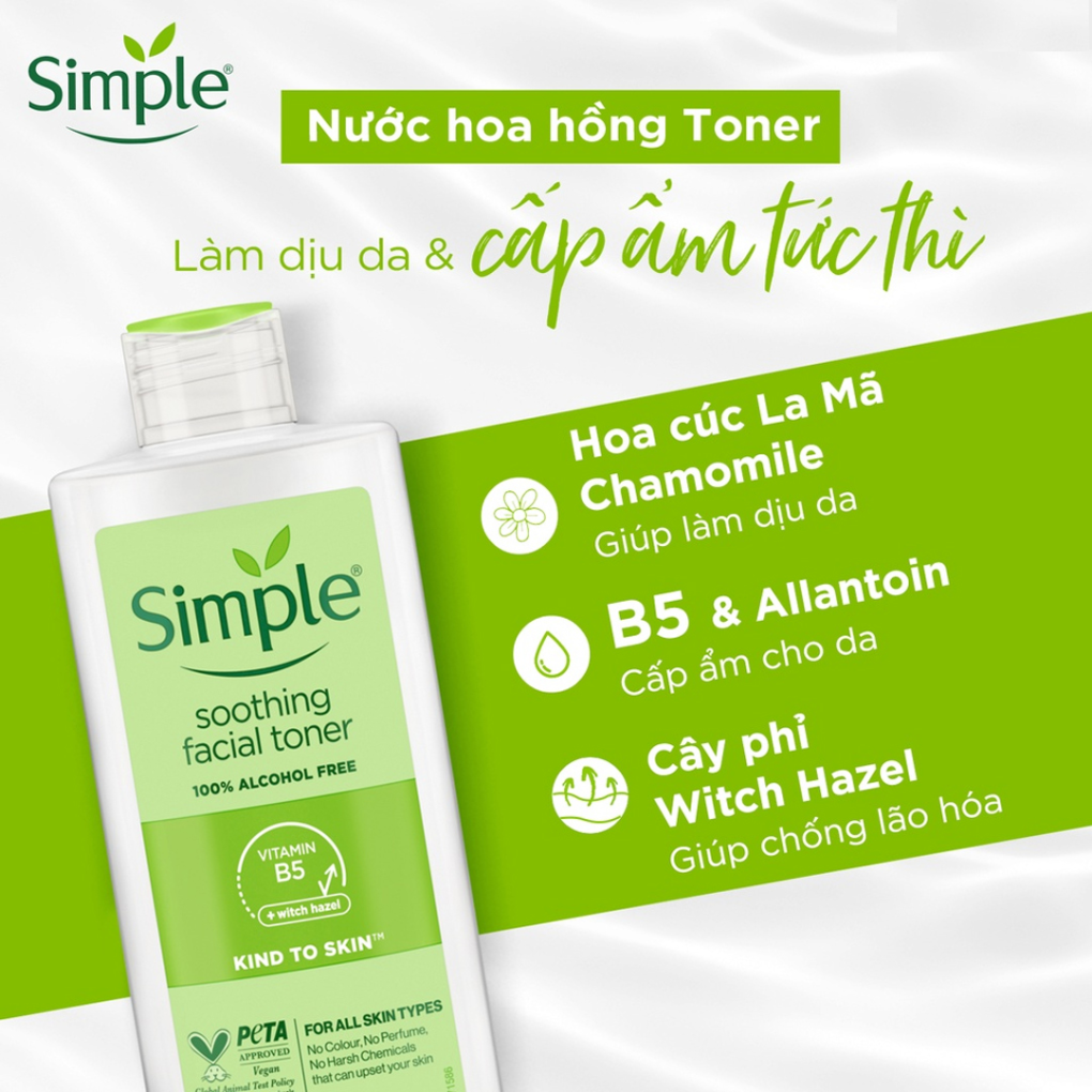 Nước Hoa Hồng Simple Làm Dịu Da & Cấp Ẩm 200ml Kind to Skin Soothing Facial Toner
